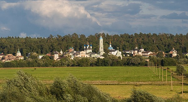 В плане монастырь почти квадратный. В центре находится главный храм монастыря — собор во имя Введения во храм Пресвятой Богородицы. Вокруг собора крестообразно расположены церкви. На севере — церковь во имя Марии Египетской, переделанная в 1858 году из старой трапезной, на юге — церковь во имя Казанской иконы Божией Матери, построенная в 1811 году, на востоке — церковь во имя Владимирской иконы Божией Матери. - https://ru.wikipedia.org/wiki/Оптина_пустынь